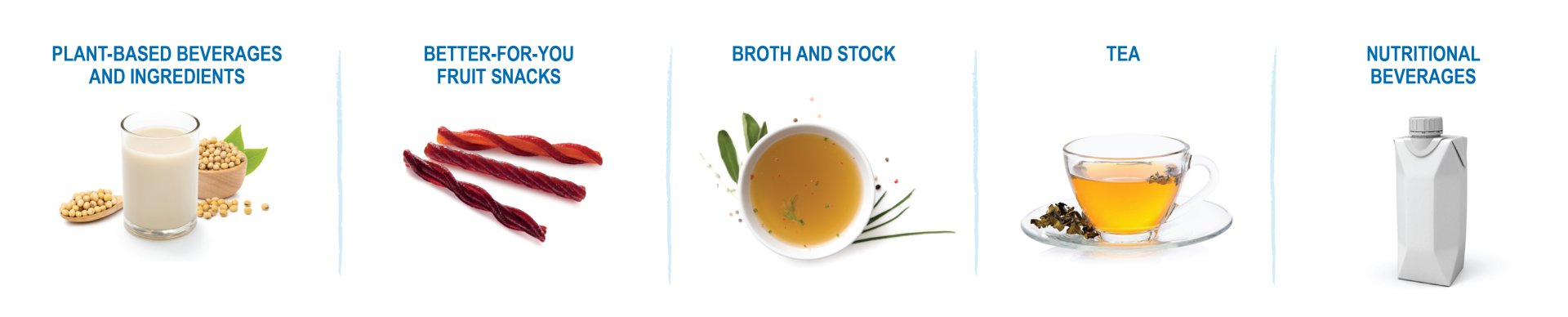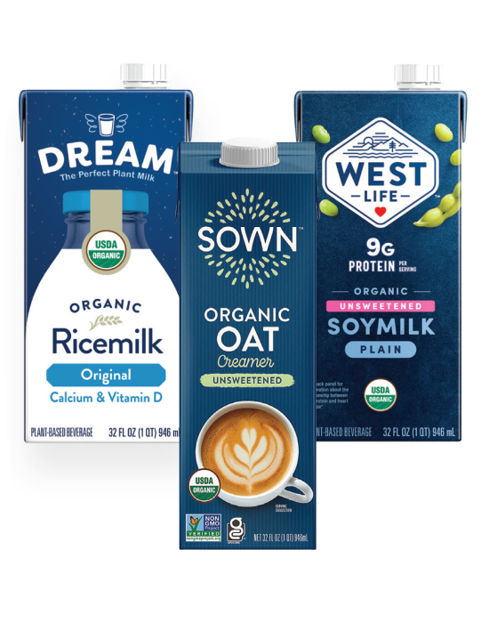 Our products include plant-based beverages, liquids and dry ingredients (using oat, almond, soy, coconut and other bases) as well as broths, teas and nutritional beverages. We also manufacture better-for-you snacks.